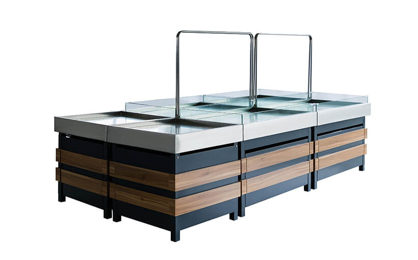 【特點】精選優(yōu)質冷軋鋼材打造整體框架,配有不銹鋼臺面,易于清洗且干凈整潔。貨架頂端可增配廣告牌分類牌,便于對所陳列的商品進行分類指示,對顧客購物形成有效引導,提升顧客購物體驗。